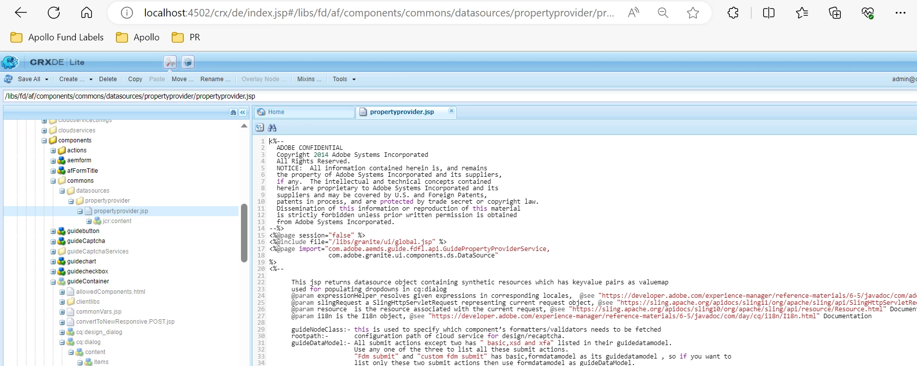 3) GO TO fd/af/components/commons/datasources/propertyprovider -> in jsp file