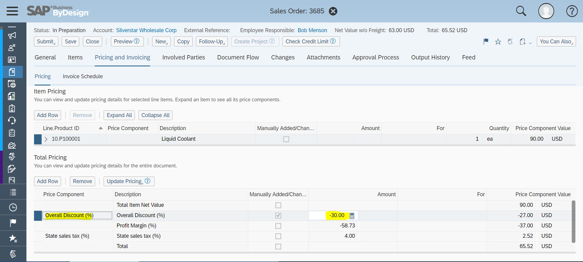 I need to hide a row in adobe forms. If the Overall Discount(%) value in sales order is not present then the row will hide.