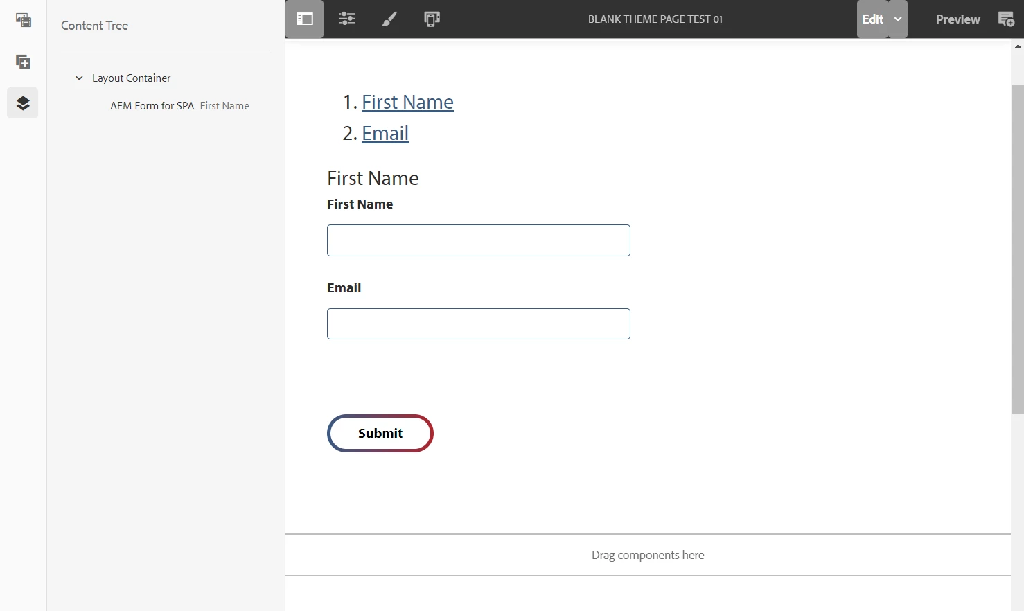 When displayed in the authored page, the form now has duplicate text for the First Name textbox field (see screenshot-2.png attached). I don't know where the first First Name came from, but the second is the label for the textbox field.