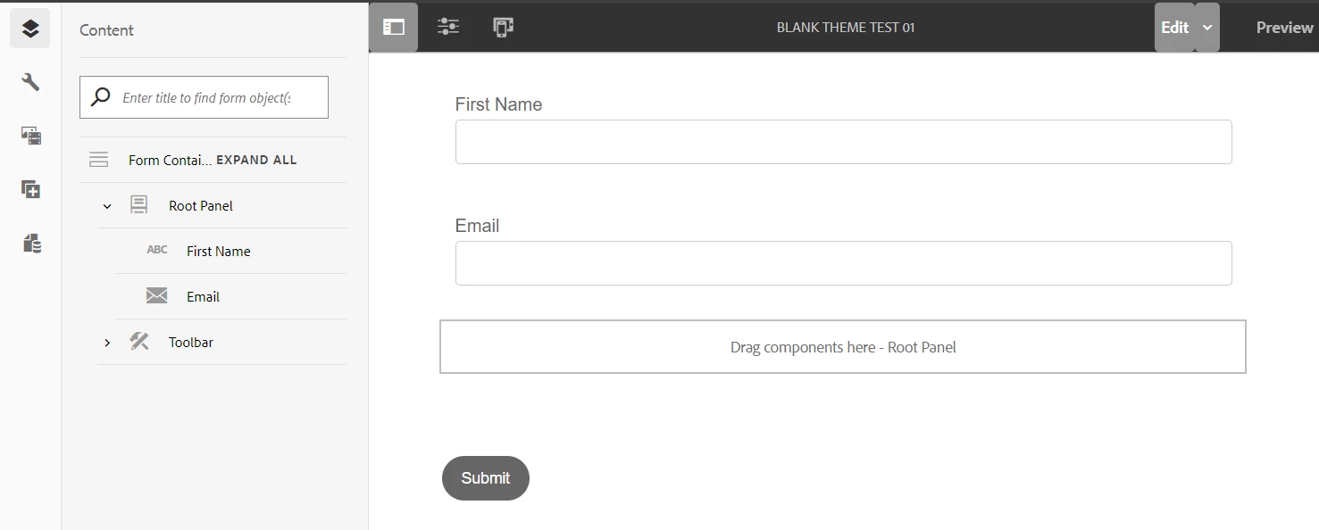 I created an Adaptive Form with the "Blank (template with Responsive Layout)" (see screenshot-1.png attached) and no theme selected. I added a few OOTB Adaptive Form components to the form andn then embedded it in an authored page.
