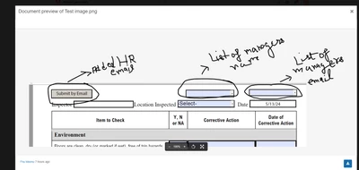I made a form with Submit button (added HR Email), Location, and managers name drop down button, managers email dropdown button.