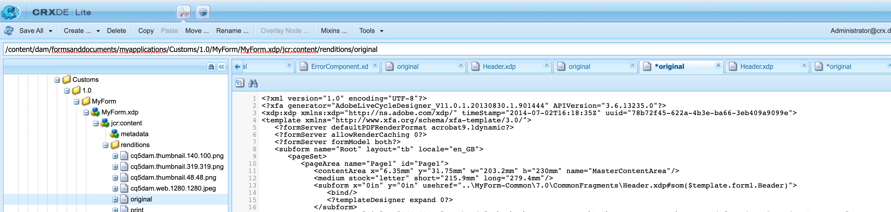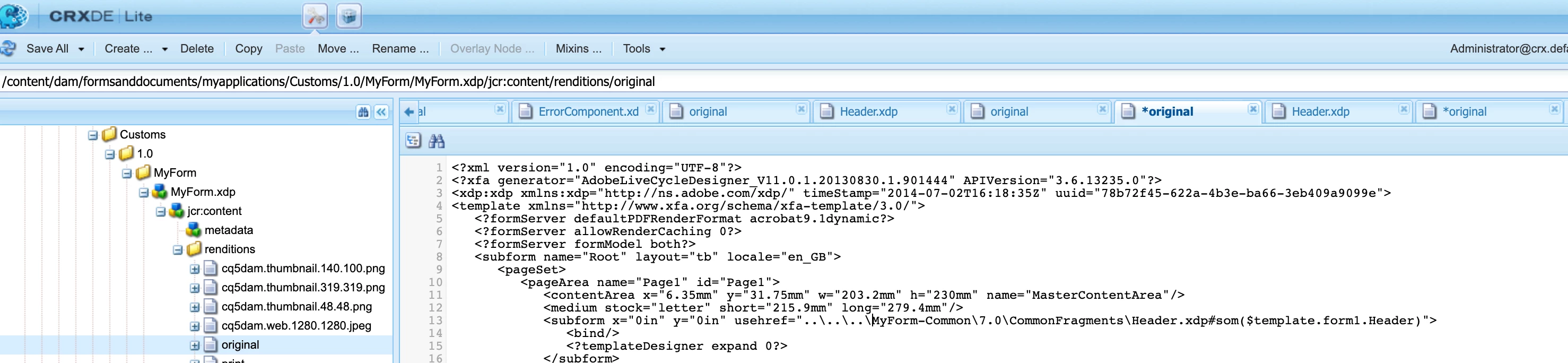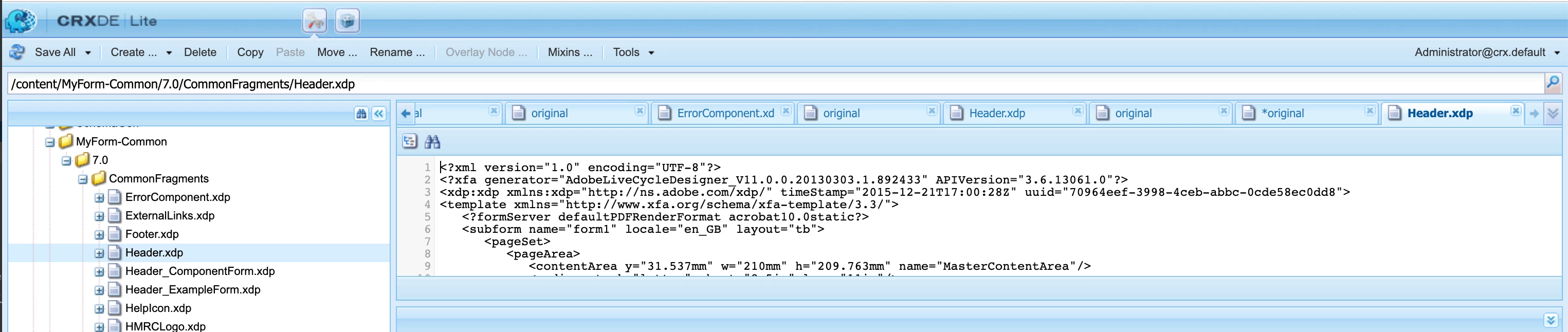 As you can see already, the same Header.xdp , node type becomes different if I place them into two places