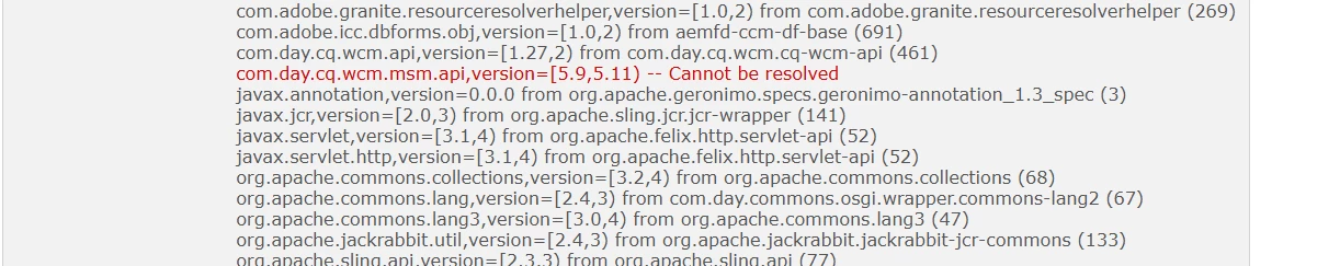 com.day.cq.wcm.msm.api,version=[5.9,5.11) -- Cannot be resolved