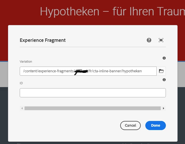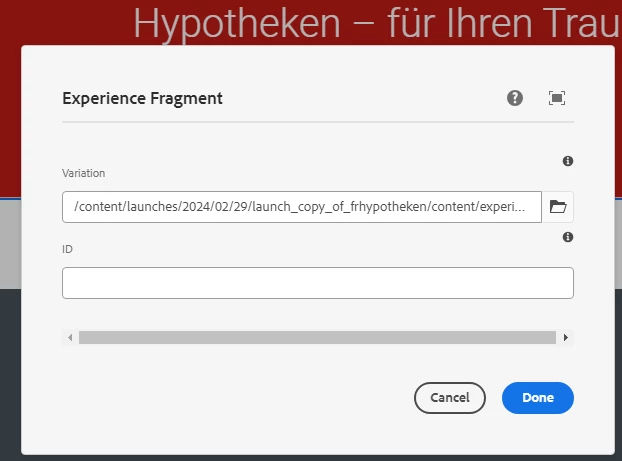 3. When I open the language copy, the path of experience fragment is showing weird folder (Expectation - XF path should point to respective language folder)