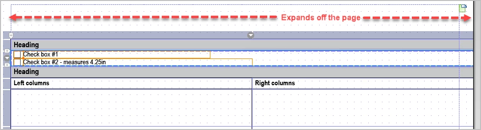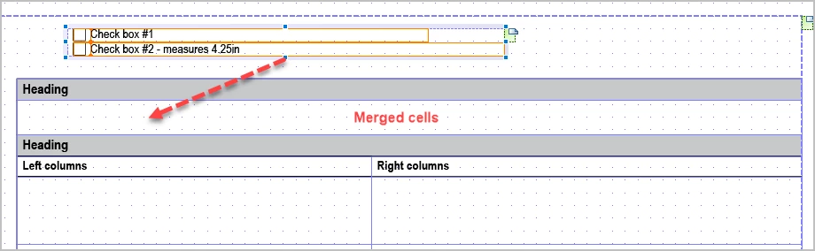 Hi, I'm designing a form in Adobe LiveCycle Designer ES4. I have a static table that has two columns. There is a row with merged cells. I have two check boxes wrapped into a subform. One caption is wider than the left column, so when I try to add the subform with the check boxes into the merged cells, the merged cells act like they are not merged, it expands the merged row like I'm adding the subform to a non-merged column. Is there a way to add objects to a merged row in a table and keep the table size what it should be?