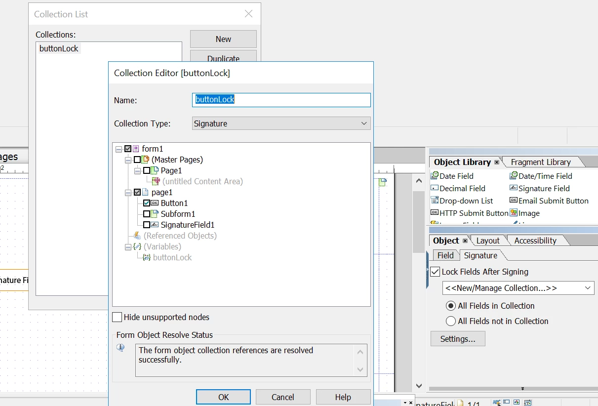 I'm usinf LiveCycle ES2 and trying to hide all buttons in the PDF forms when a signatures is inputted. To do so, I have to loop through all nodes/fields in the form using the below function, but I could not help finding the method that returns the type pf field/controls so that I only hide buttons not others fields/controls such as textfield, radio, signature etc..Can anyone help me to find the method that return the type of control/field please? The place where I need this method is surrounded by @@@.