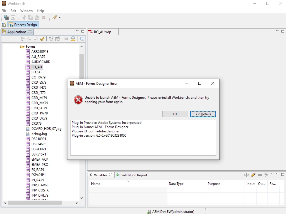 New install of AEM workbench and FormDesigner unable to start