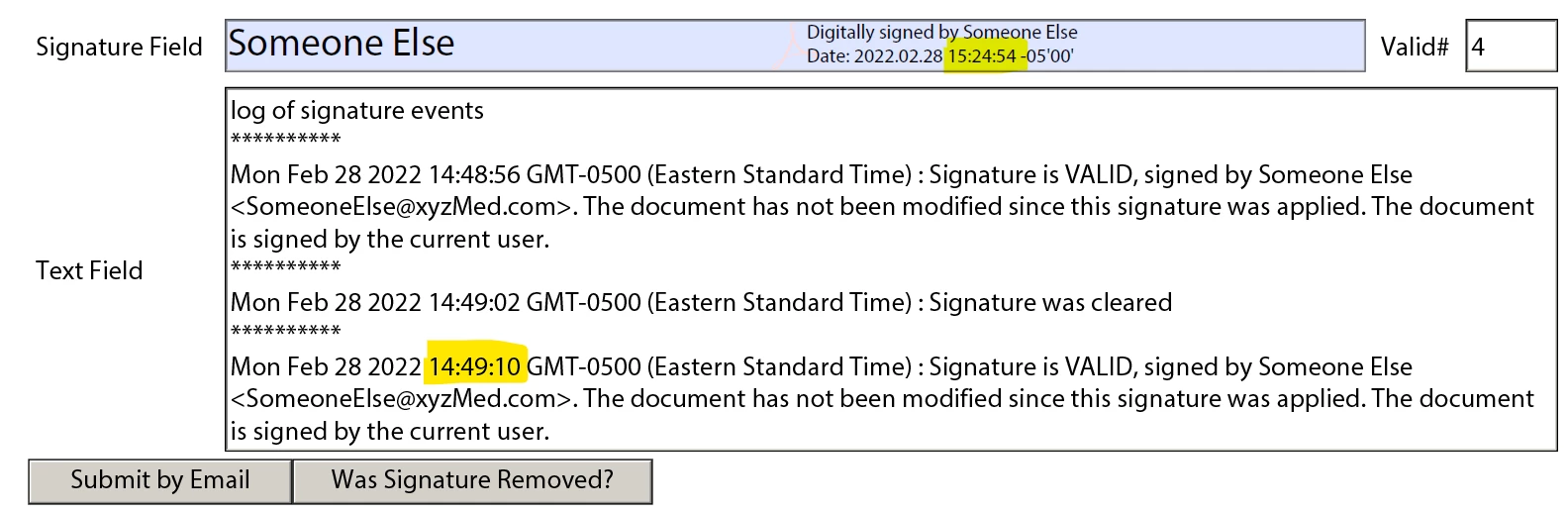 I also have a numeric field that records the SignatureValidate() value at the time of the change.
