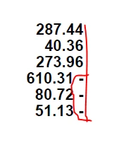 a negative after a positive the numbers are no longer in flush. => See attached Screenshot.