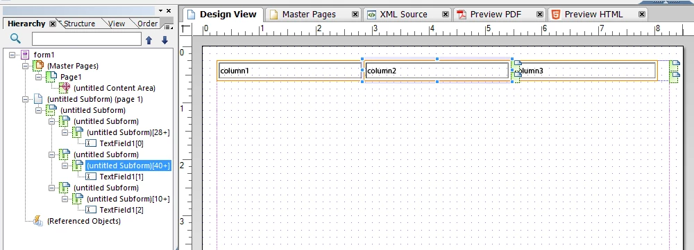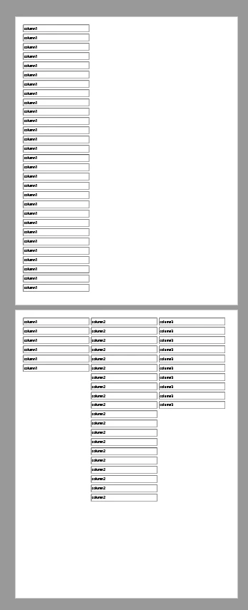 So here my question, what is it exactly that you want to do with these subforms, Is it a table? Are the rows linked between the subforms or is this just content that should spread over he three columns?