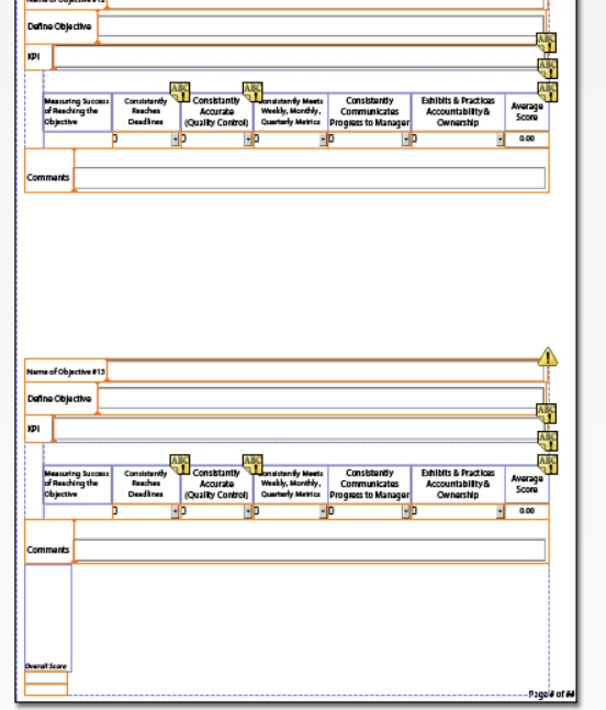 1. On the last page of the form in the original design, I had 2 "overall score" fields, which were placed in the bottom of the page and centered on the same line, and I want to try to keep that same design, but if I don't add those fields into the subform above it, if the fields grow to big, the text doesn't shift the rest of the form down, so I tried putting the "overall scores" fields in its own subform, same result, and the only way i can seem to get it to work is adding those fields into the subform above, and I had added t top margin to space it out from the above field, but i do not like the top down look for those fields, any suggestions?