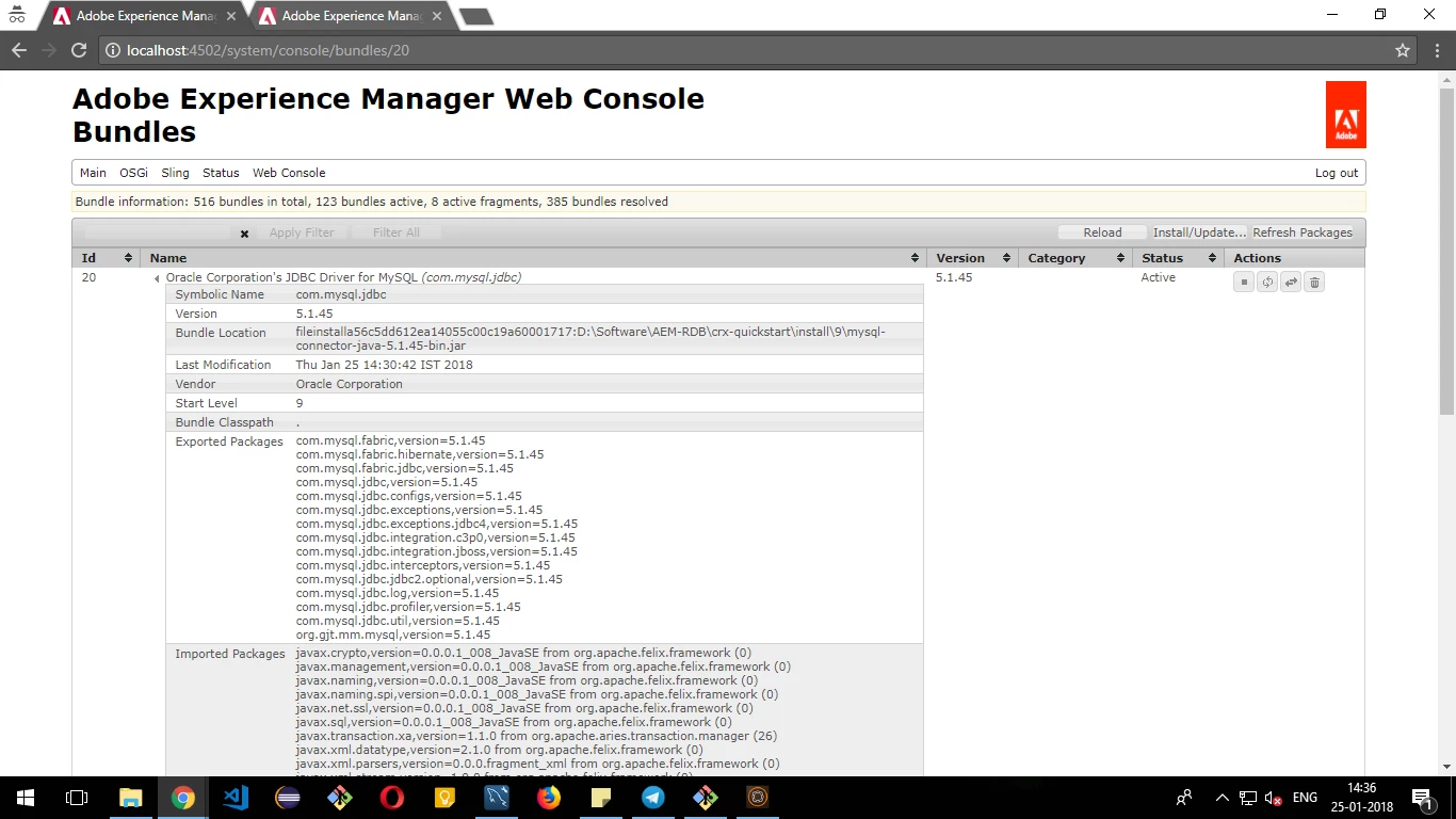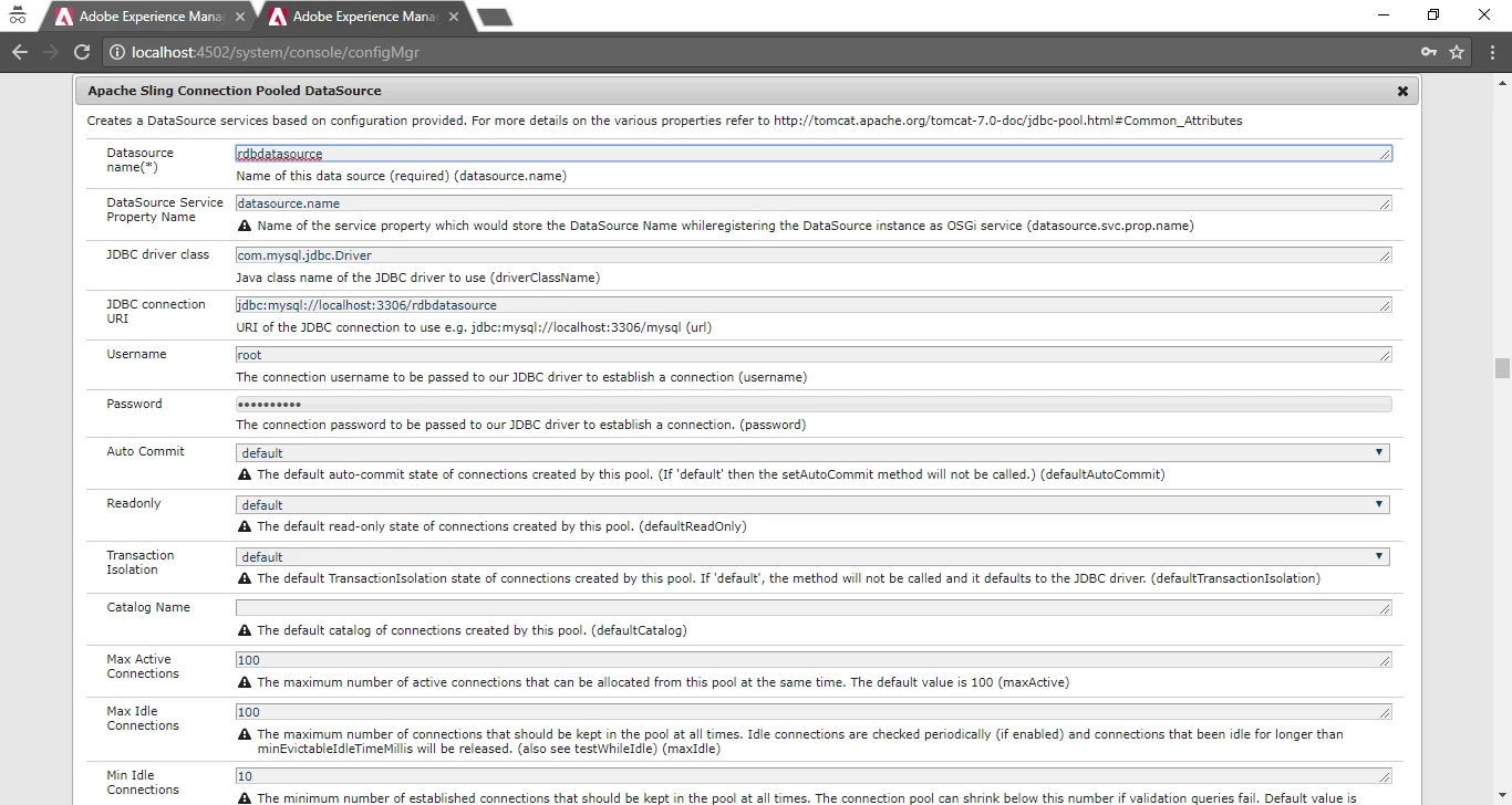 I am trying to use mysql database over TarMk.I made Install folder and dragged mysql-connector-driver and did a configuration file named as org.apache.jackrabbit.oak.plugins.document.DocumentNodeStoreService.config and configure as
