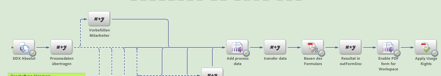 I have a complex process which uses a custom render orchestration which stitches XDPs together and modifies the data and then returns a PDF with reader extensions.