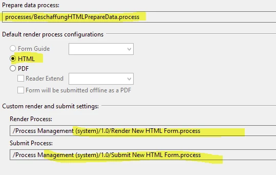 We are currently upgrading from LC ES 4 to AEM Forms 6.4 and are in the process of migrating our Flex workspace to the HTML workspace. We would also like to be able to render our XDP PDF Forms in HTML. We pre-fill our forms and add a form bridge using a custom action profile, so changing the start point action profile render process to HTML doesn't give the expected result.