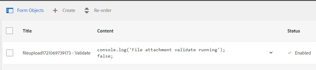 Does script validation run for the File Attachment core component or is it just broken in AEM Forms? The mandatory validation works when I check Required. However, when I create a simple Validate rule in the code editor (see attached screenshot) that includes...