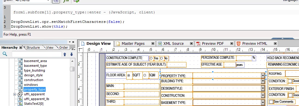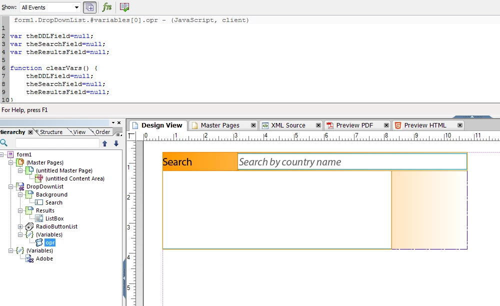 app.alert("Error: theDDLField is null while in hide().");