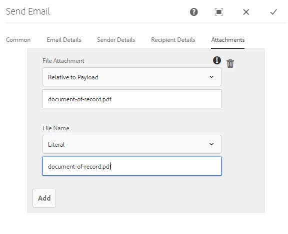 Send email attachment config: