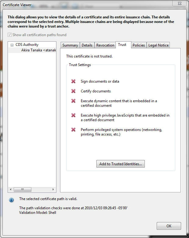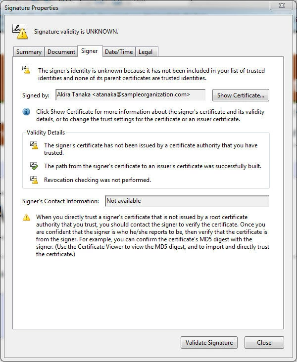 that says: at least one Signature has problems.
