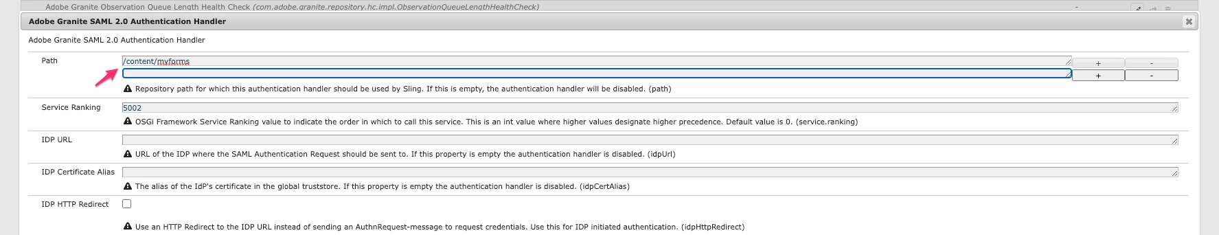 I have set up SAML authentication on our server. I would like to protect only a folder of AEM Adaptive Forms. I suspect I can use the Path in the Authentication handler and use the Mixins as describe in the documentation for we-retail. This is the first thing that requires feedback.