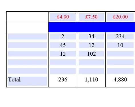 I have created a form with 12 Columns and 23 fixed rows. In Row 1 of the table is a value, the remaining 22 rows allow the user to enter a number, what I would like to do is in the footer row be able to add up the numbers in the 22 columns and then multiple that by the value in Row 1 to give a total.