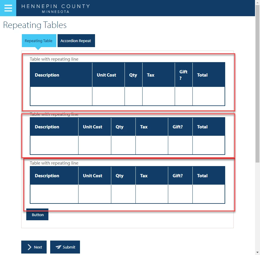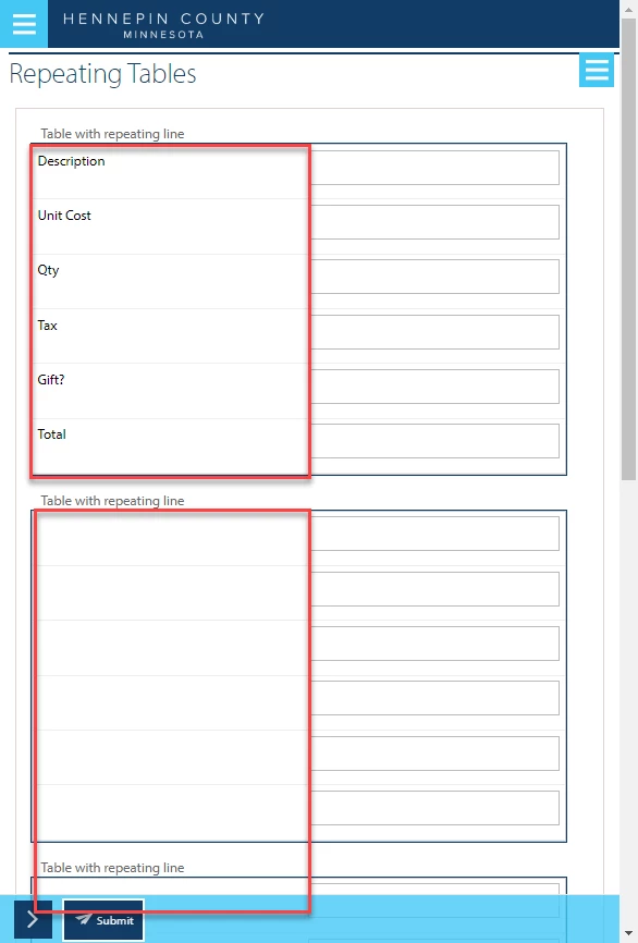 We have an AEM 6.4.1 form with repeating panels that have a table in them.