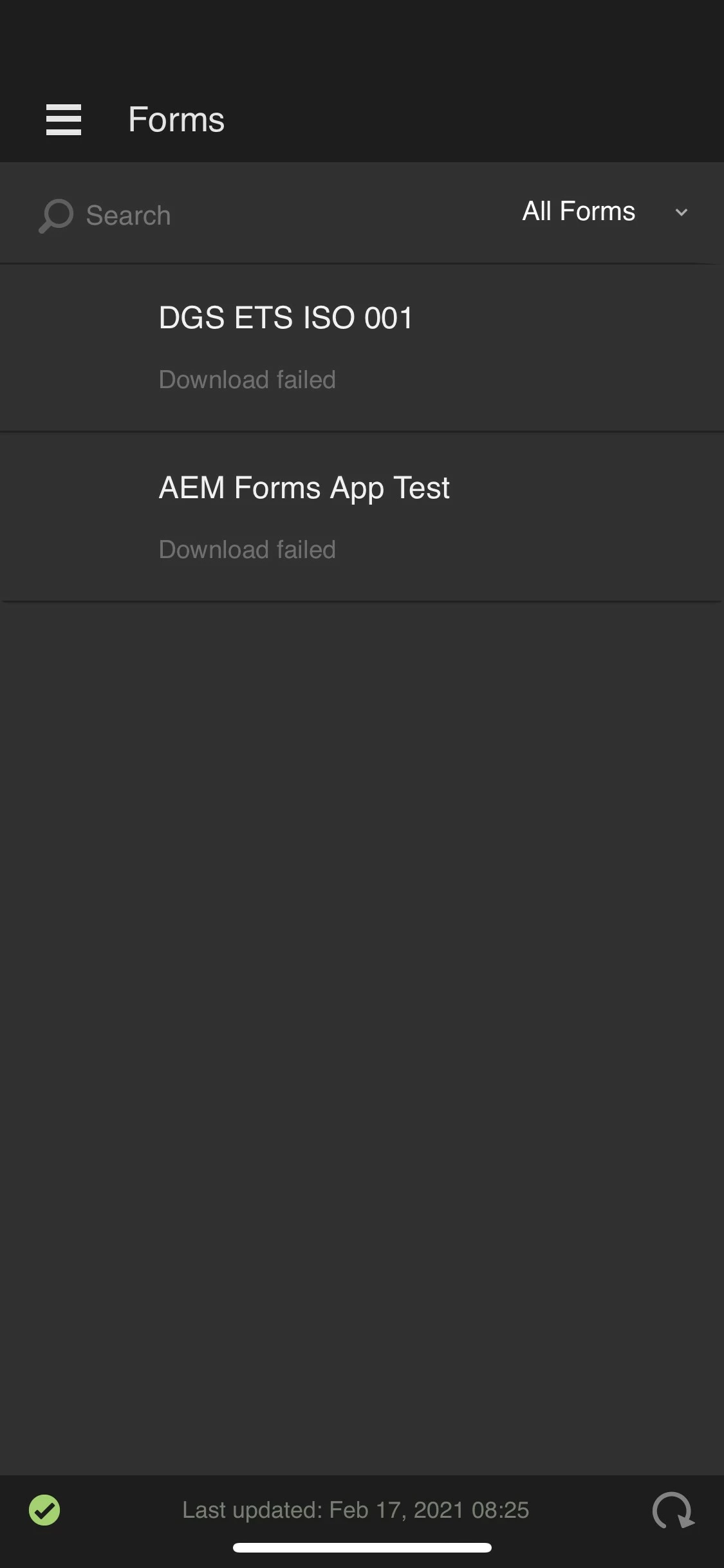 We are trying to use the AEM forms app, from the Google Play Store/IOS App Store, however we've been unable to open our forms from within the app. We are able to see which forms are available in the app, but not the ability to open/download them. The text "Download failed" also appears below the title of the forms.