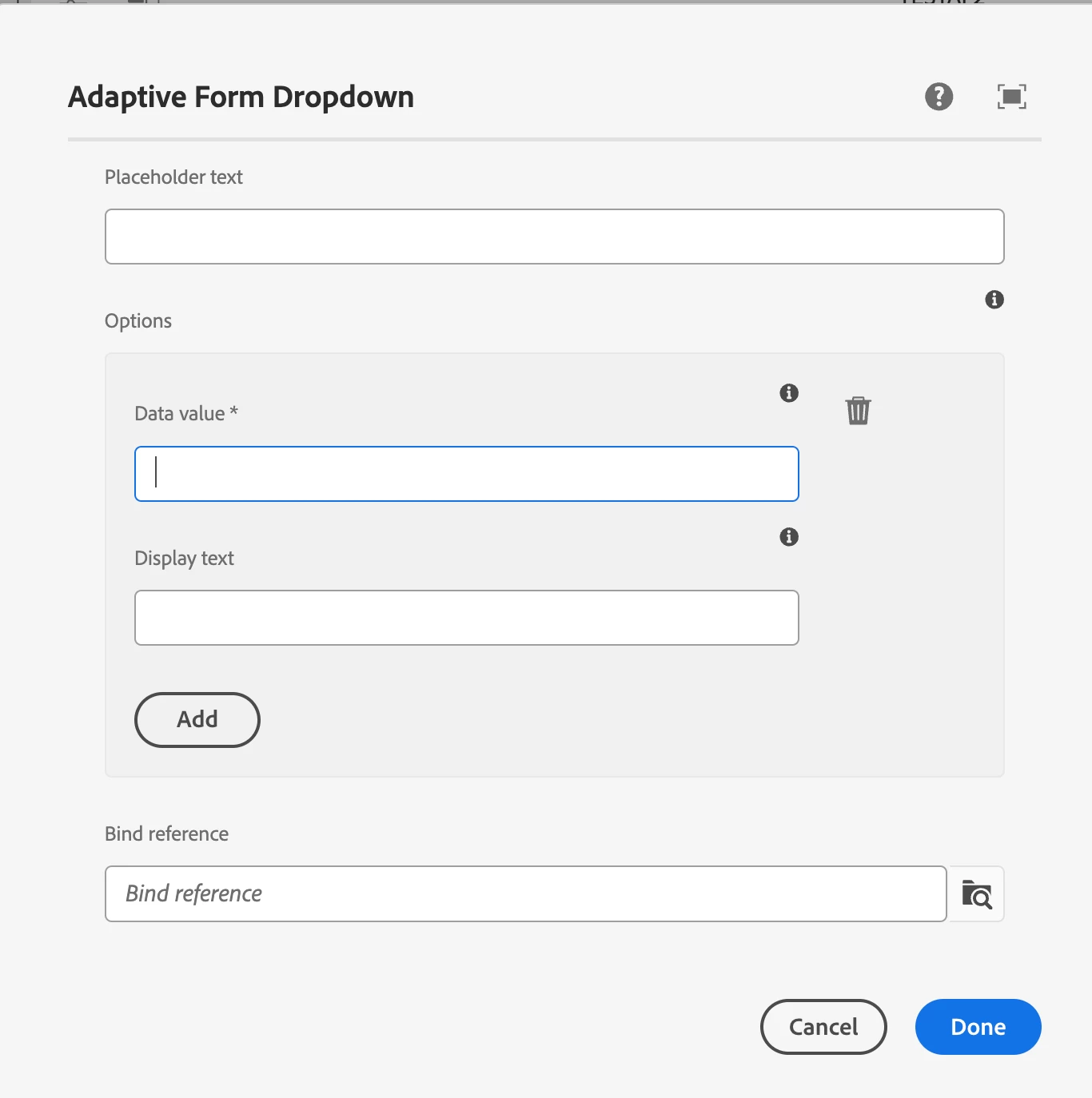 Value Field is not present in the core dropdown list component OOTB for AEM Adaptative Forms, not able to send the value. Any help?