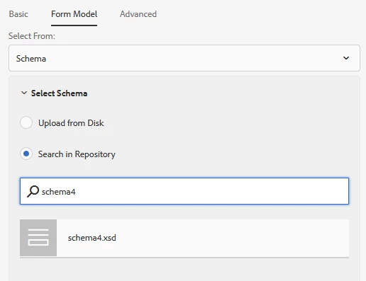 how do i upload an xsd schema into the repository so that i can use it as a form model for multiple adaptive forms?