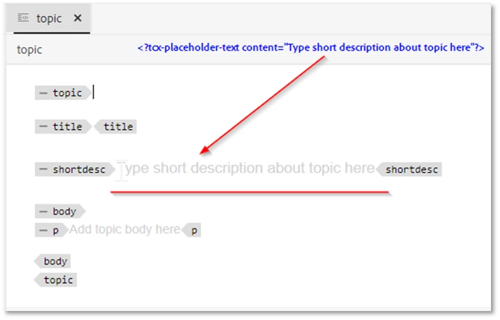 I recall that it is possible to add a bit of code to a paragraph tag in a DITA template (e.g., Topic) that would display a prompt for the author regarding the text to enter in that tag. When the author clicks within the tag, the prompt text disappears. Does any remember the specifics of that?