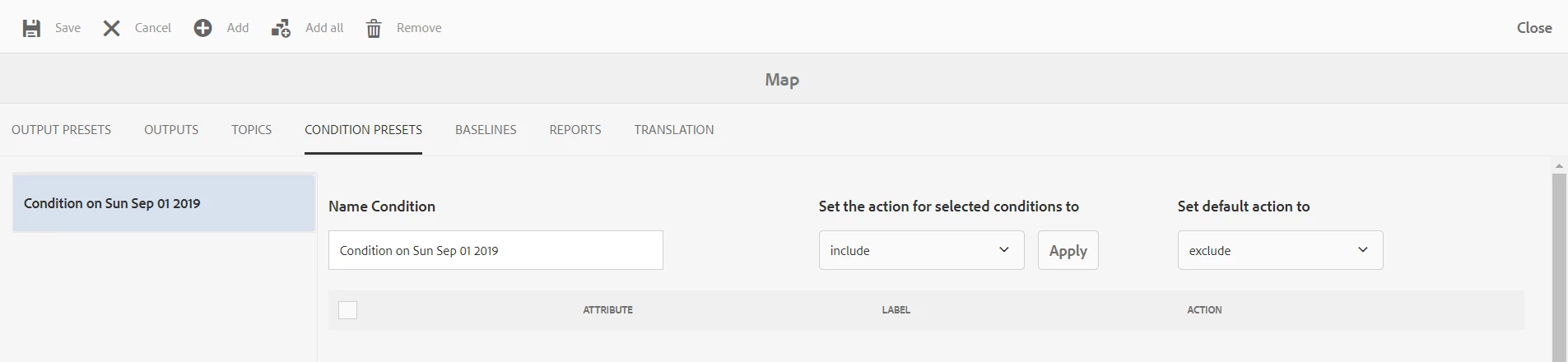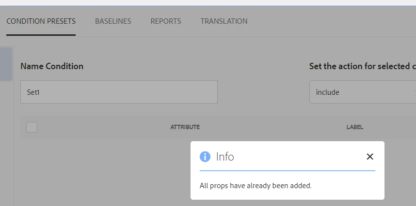 I setup a folder profile and then tried to use it in a map in the folder that the folder profile specifies. When I select "condition set" there is no list to select from, and clicking add produces the message "All properties have been added".