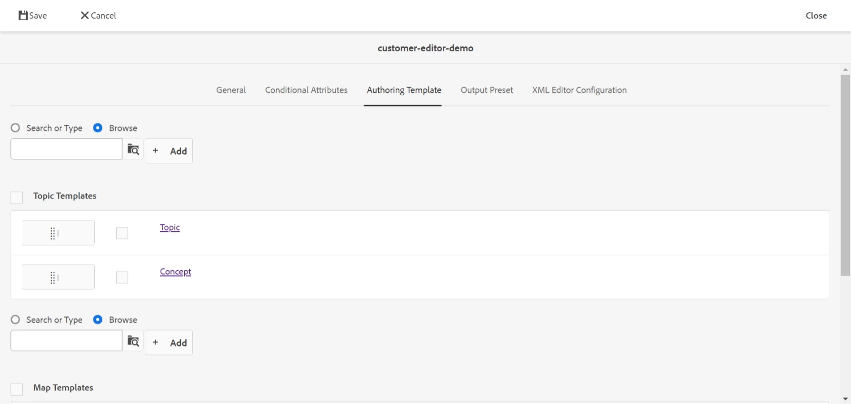 In AEM guides folder profile it shows default topic templates and map templates. Is it possible to create customized topic templates or map templates.