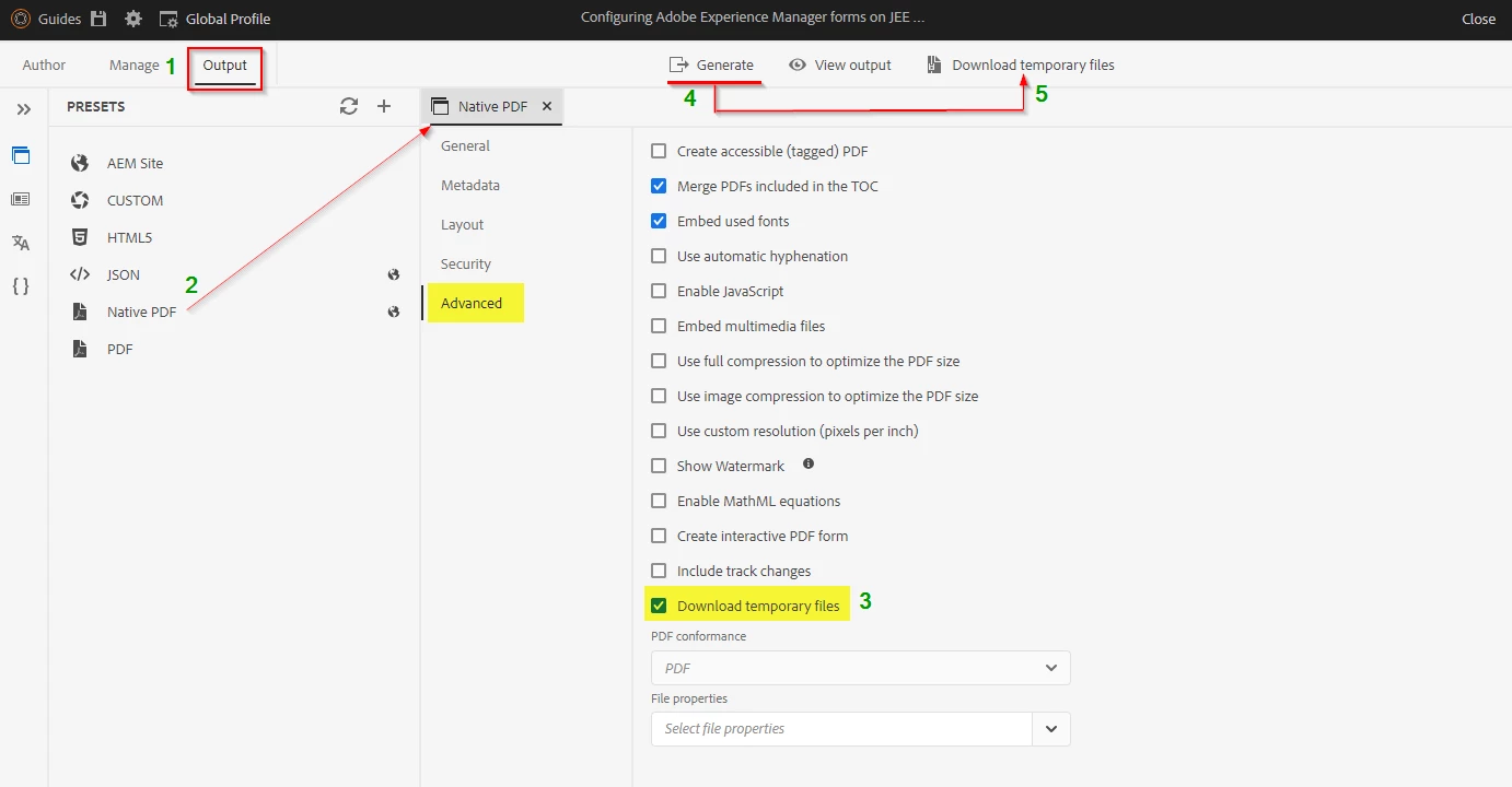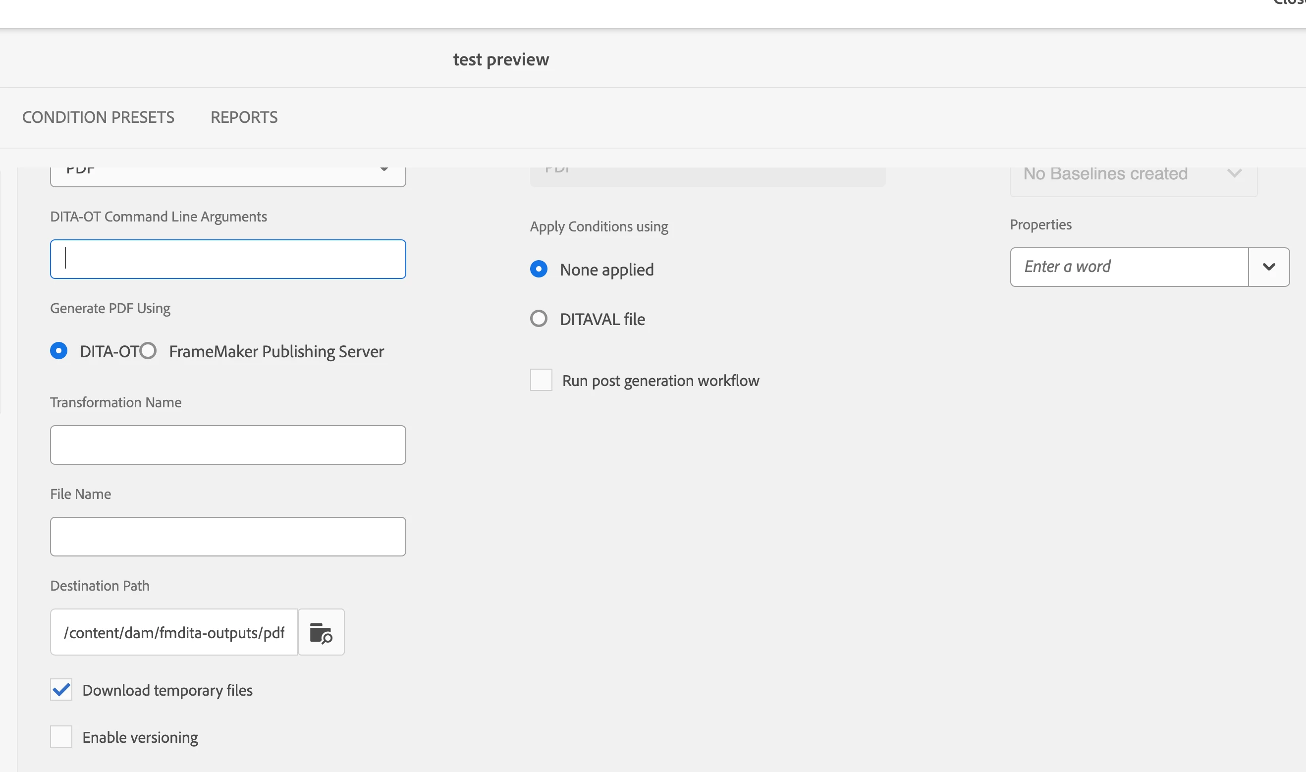 2. What is the option to not to remove temp files generated . We want to analyze temp files for custom pdf rendition failure