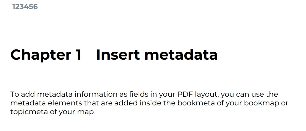 I can see how easy it is to insert the BookNumber element of a Book Map into the PDF footer ( <div style="width:33.33%; float: right; text-align: right; font-size:0.8em">p/n: <span data-field="metadata" data-format="default" data-subtype="//bookid/booknumber">Book Number</span></div>), but unfortunately, all our DITA maps are maps, not bookmaps.