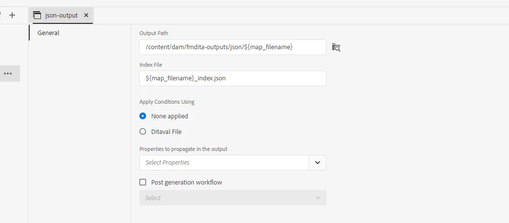 1. How do I generate output in /content/dam/fmdita-outputs/dita that is not zipped. I want the output in a folder, just like how the json output is created.