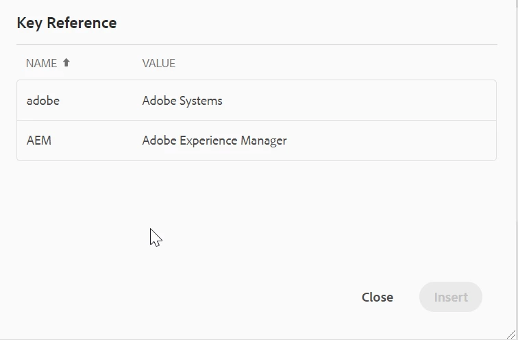 - Here we have defined two definitions, as shown above, provided a keyref as “AEM” for the “Adobe Experience Manager” text.