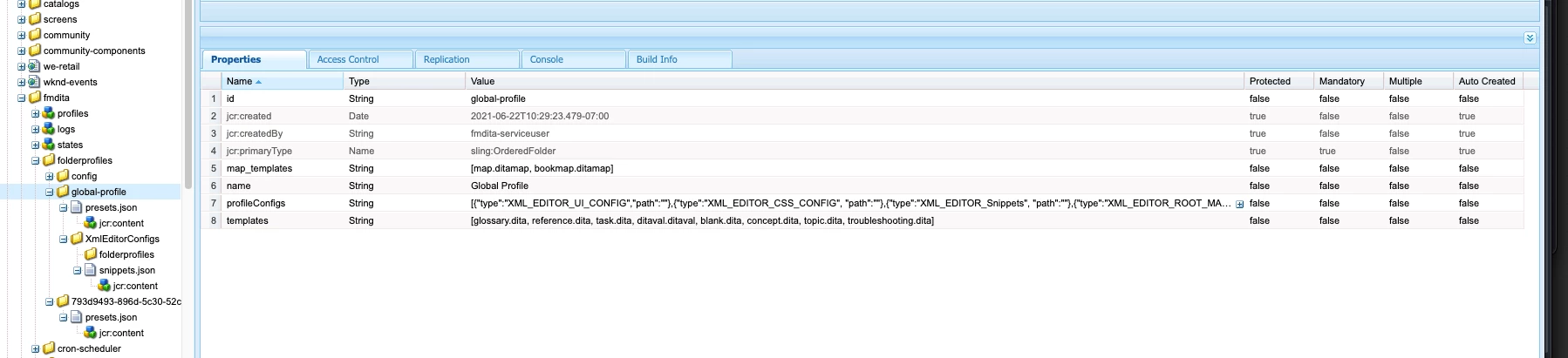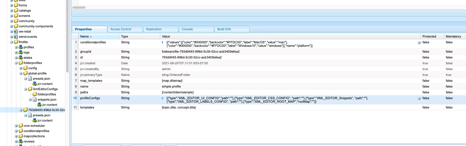 Permission for Folder profiles in XML Documentation