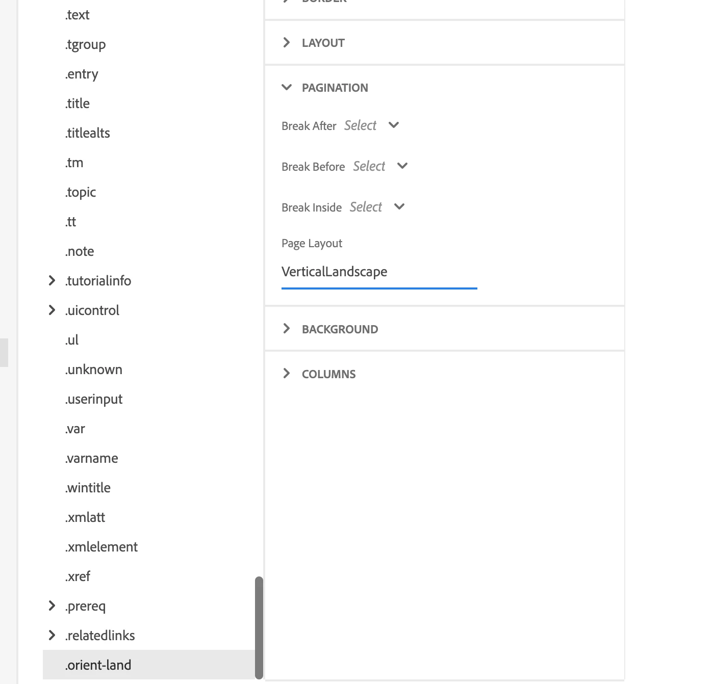 - Create a new PDF page layout ("VerticalLandscape") by duplicating the "Landscape" layout.