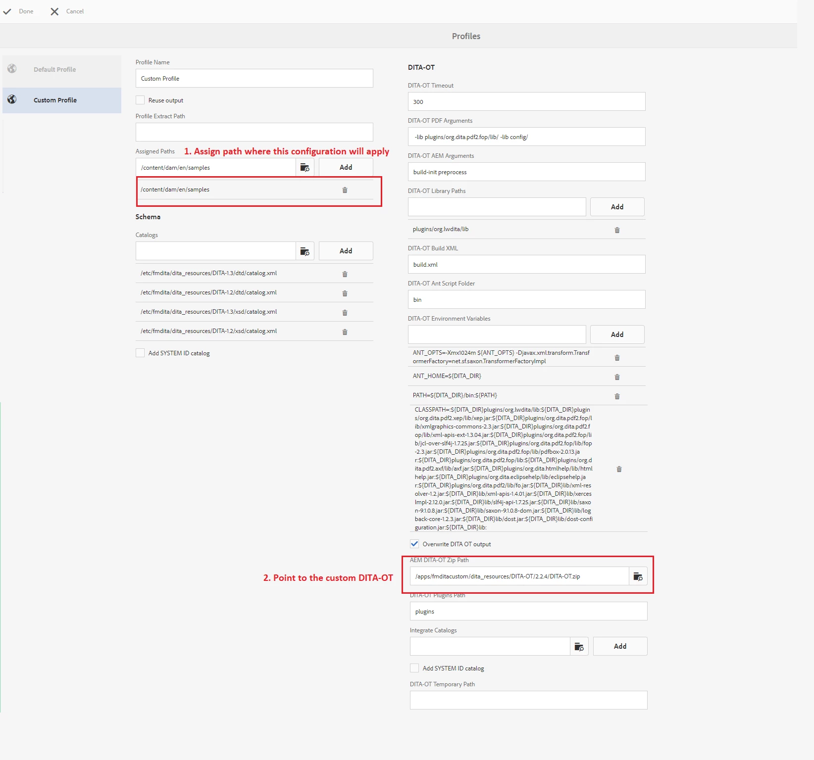 - Add DITA Profile through Tools > Guides > DITA Profiles (use the DITA-OT path where the custom DITA-OT is uploaded, refer screenshot below)