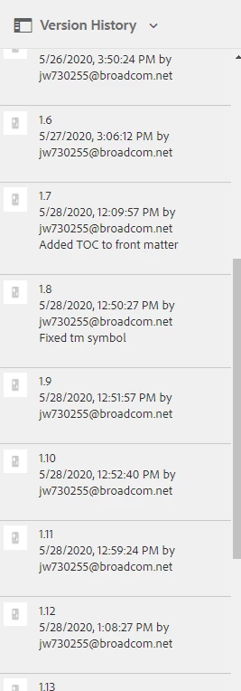 Currently, AEM lists the ditatopic and ditamap version history with the first version at the top and the last version at the bottom. When a ditatopic or map has a lot of versions, you have to scroll way down to find the lastest version. Would prefer the order to be reversed so that the most recent version appears at the top.