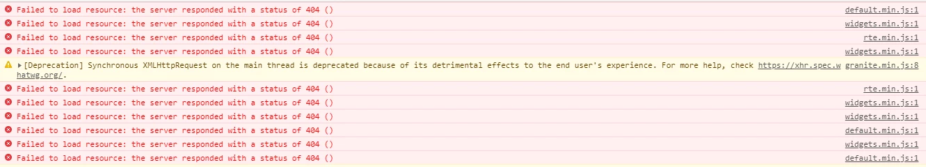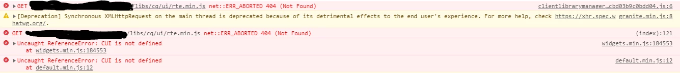 404 errors in console for rte.min.js and widgets.min.js in AEM 6.5 after migration