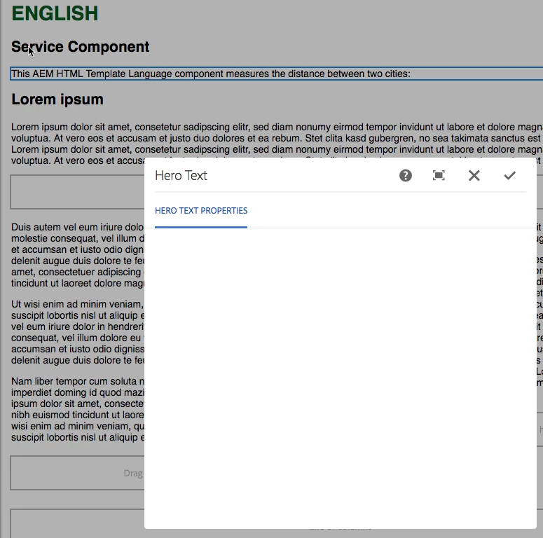 I'm trying to complete the Creating an AEM HTML Template Language Component that displays data from a Restful Web Service and adapted it for 6.3 and have gotten most all of the way there, but when I test it out, it shows the dialog, but no fields within it. Anyone else tried this in 6.3? I'd downloaded the 6.1 package but it didn't work for me in 6.3.