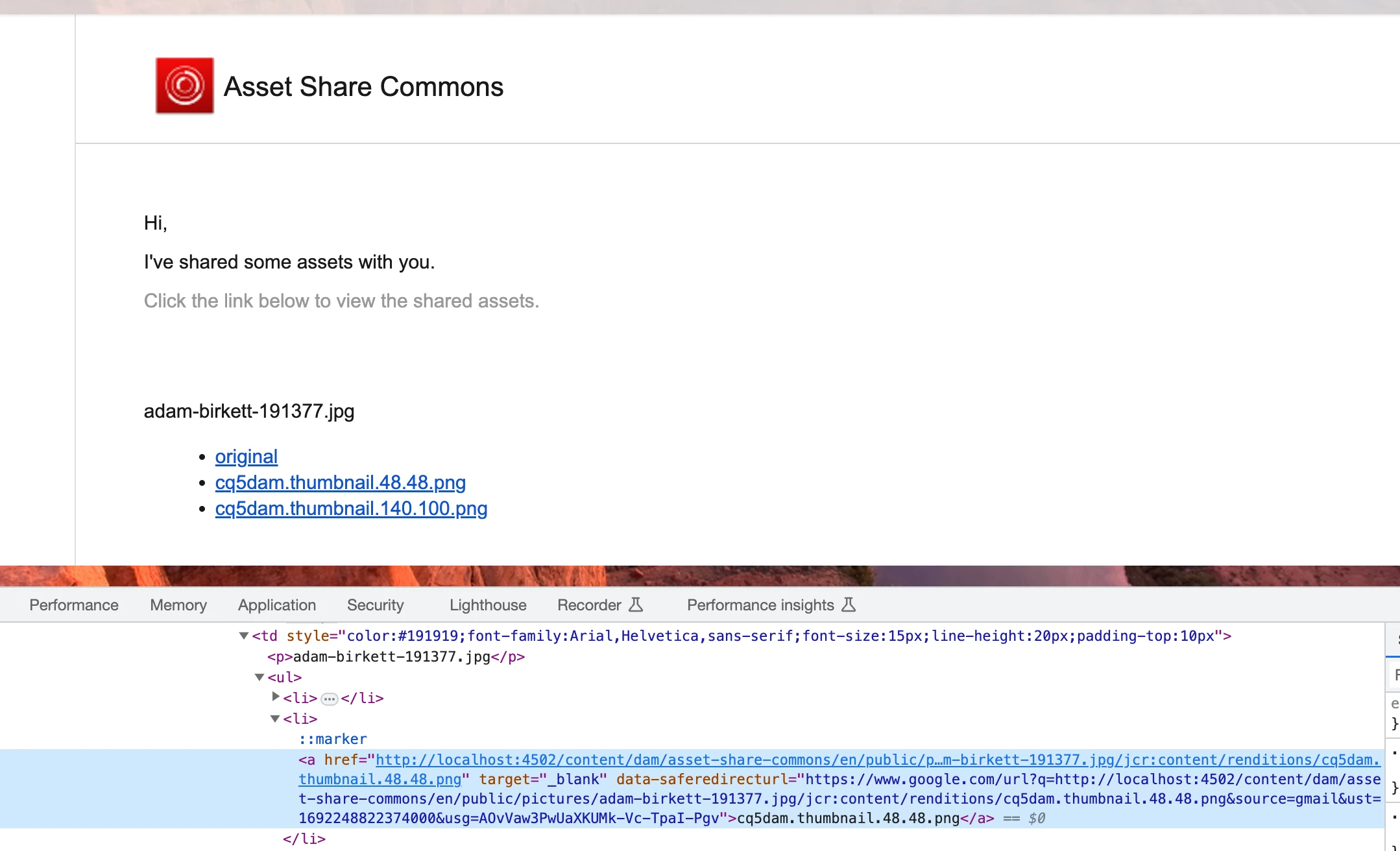 We are using asset share commons default email template
