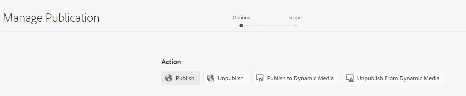 | Current/Experienced Behavior: | Publish to AEM option cannot be hidden |