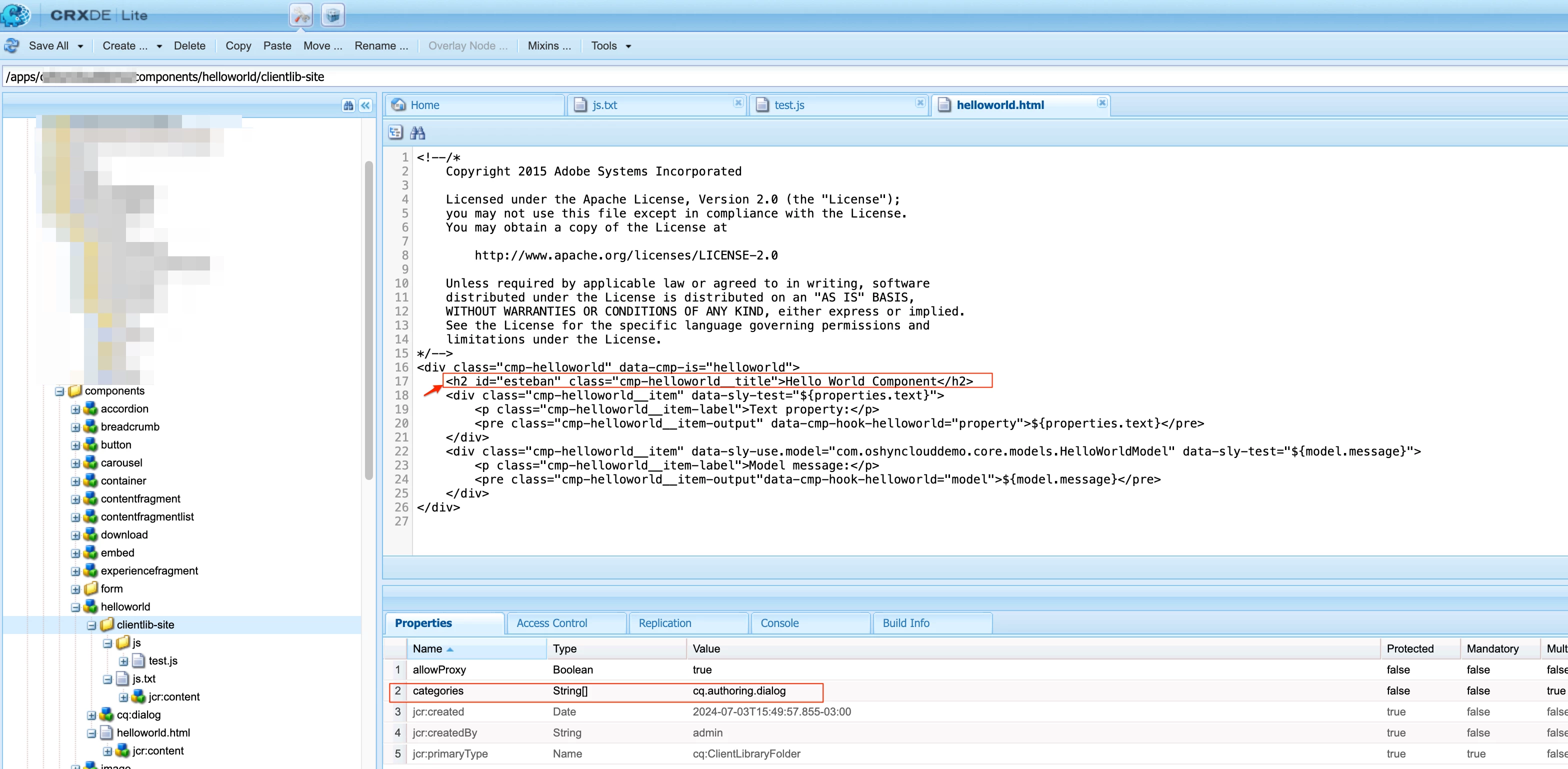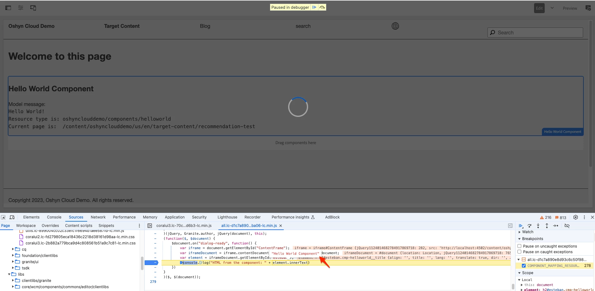 We have tried window.parent.document etc but this doesn't give component's HTL.