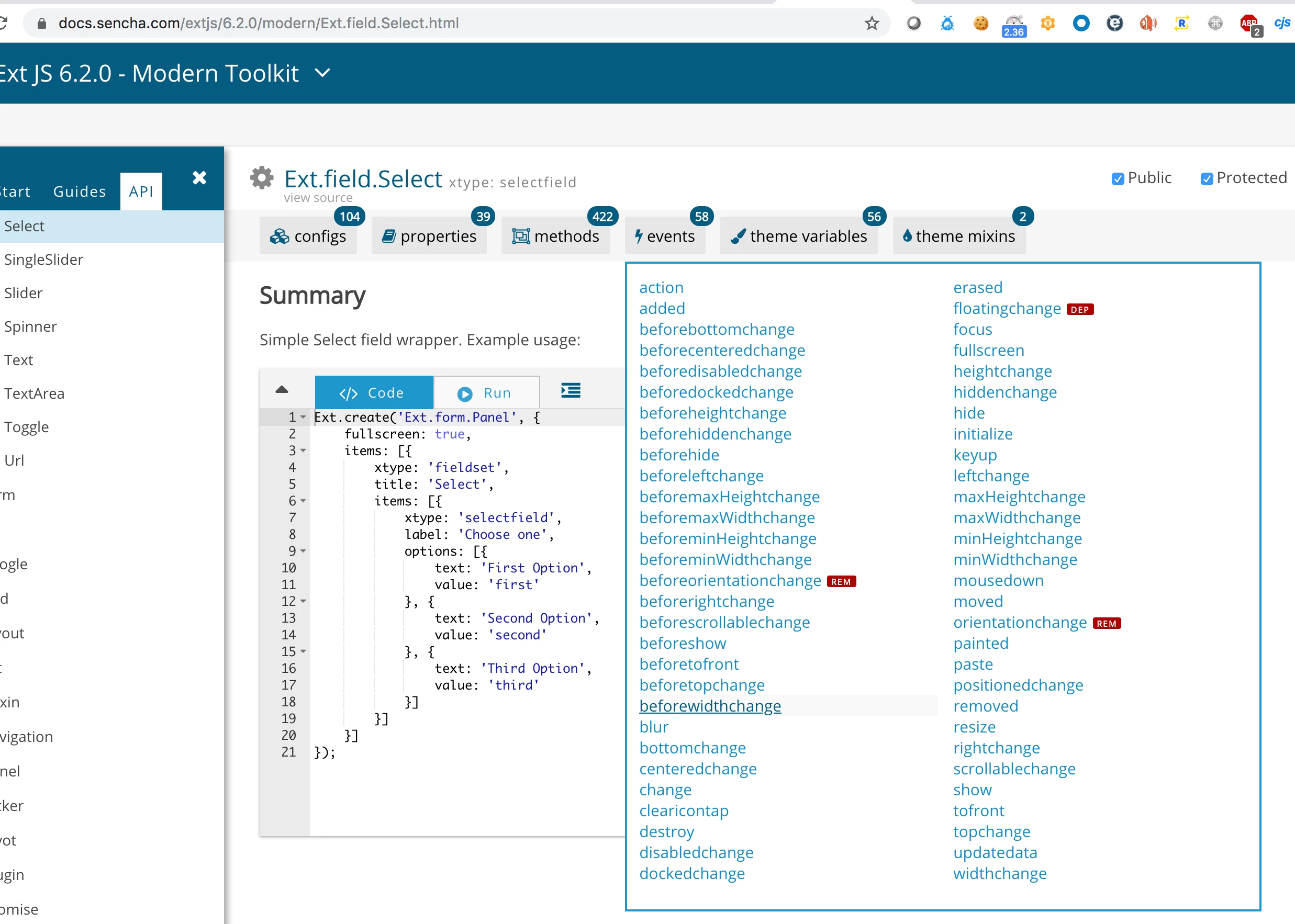 I have classic UI dialog with xtype selection and selectionchanged listeners. container, box and value parameters are passed to the listener.