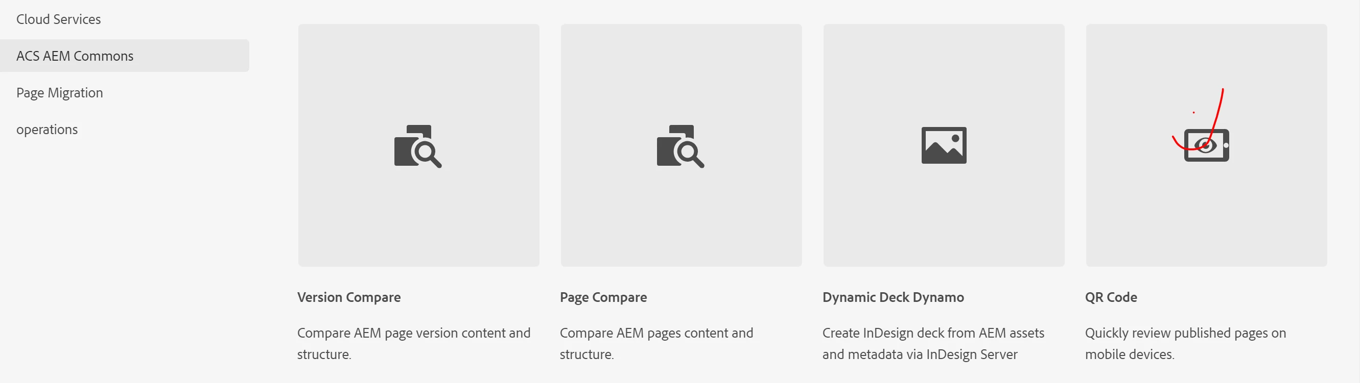 we were working on enabling acs-commons QR code, to view the domain url publish page.