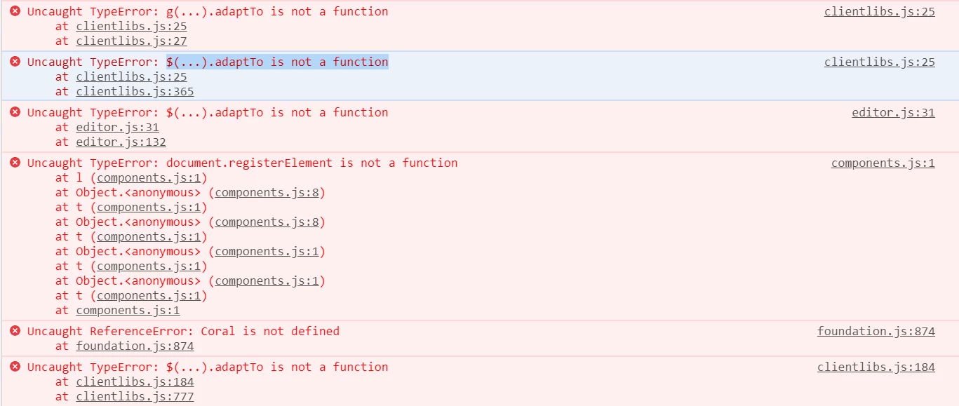 I have tried the below code for setting a max limit on multifield which was working fine yesterday and today out of nowhere i am seeing the $(...).adaptTo is not a function error and Coral is not defined error on console.