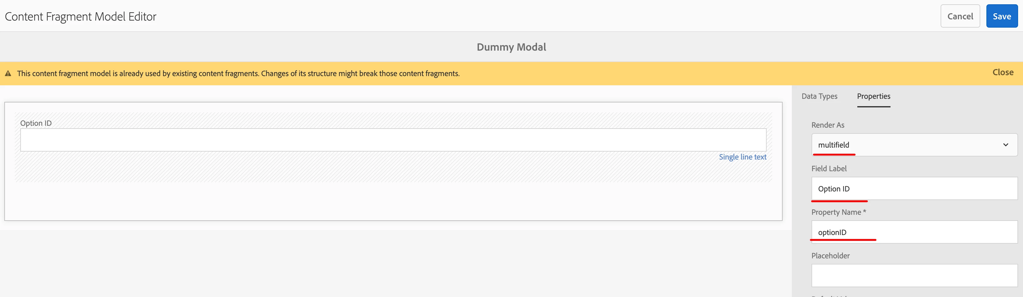 We have a requirement where we need to add validation on the input number in multifield in the content fragment modal. I am aware of adding granite:data node and target it while closing the dialog. But here the granite:data node is getting deleted incase the modal is updated. Is there any way i can add validation in content fragment authoring dialog ??