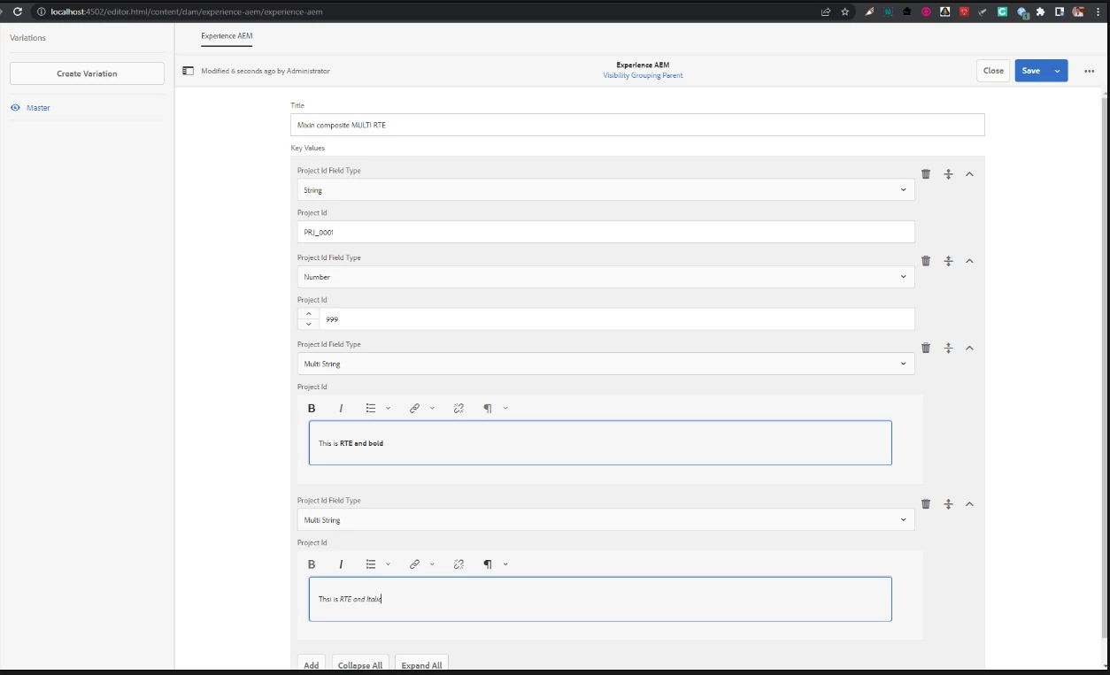 adding Composit mutilfield RTE on ContentFragment in AEMasCS