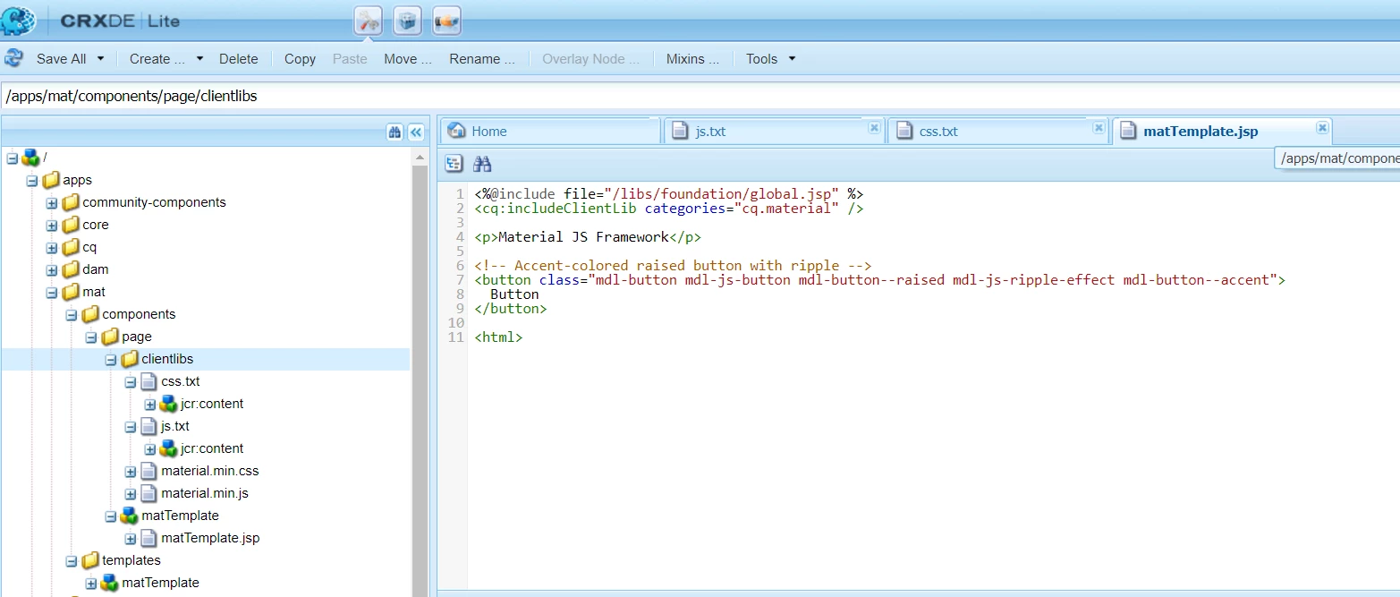 I have a question about adding a large Javascript library to a component in AEM - specifically, Material Design. So far in my experience with AEM, I've added JS files individually to my clientlib folder, but Material Design has dozens (possibly hundreds) of JS files to control the various components in their design. (Here's their Github for reference.)